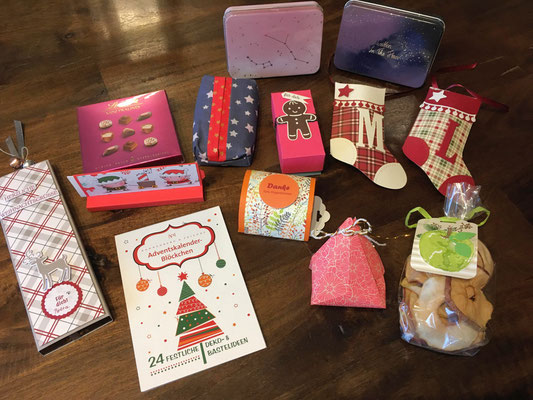 ... und zwar mit dem Adventskalender. Wir haben auch in diesem Jahr wieder einen im Team gemacht und ich freue mich schon wahnsinnig auf die tägliche Überraschung. Ich finde die Verpackungen fast schon genug, ich bin von den Ideen sehr begeistert und von der Vielfalt enorm beeindruckt.